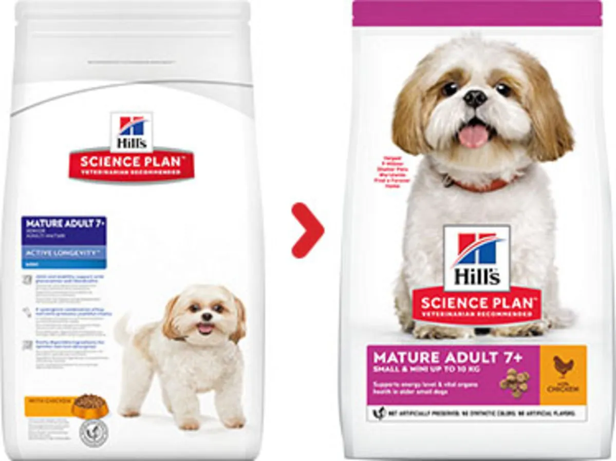 Les croquettes Canine Adult Mature 7+ Small & Mini au poulet de Hill’s Science Plan aident votre chien adulte de petite race de plus de 7 ans à maintenir un poids idéal.