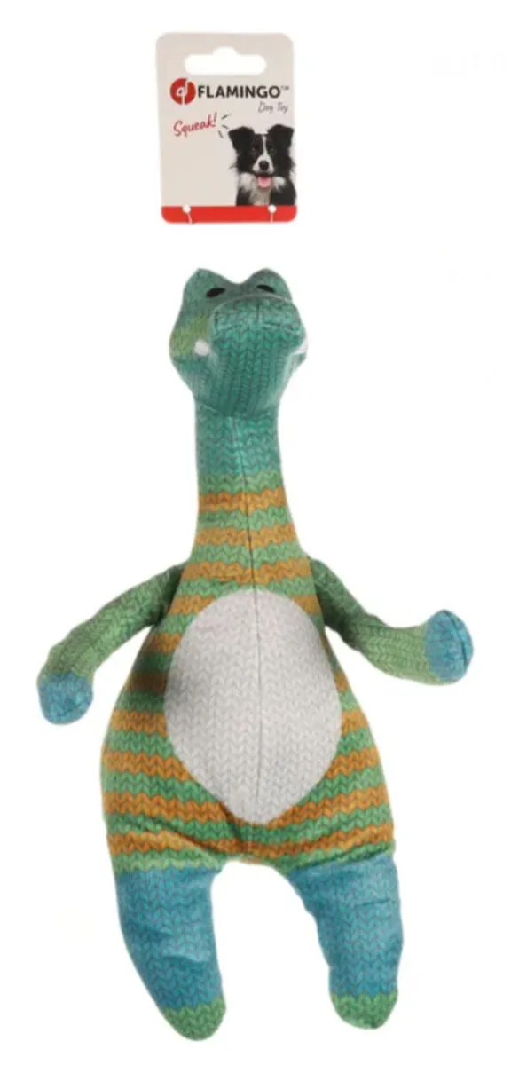 Ce jouet Django Dinosaure pour chien est fabriqué en tissu.