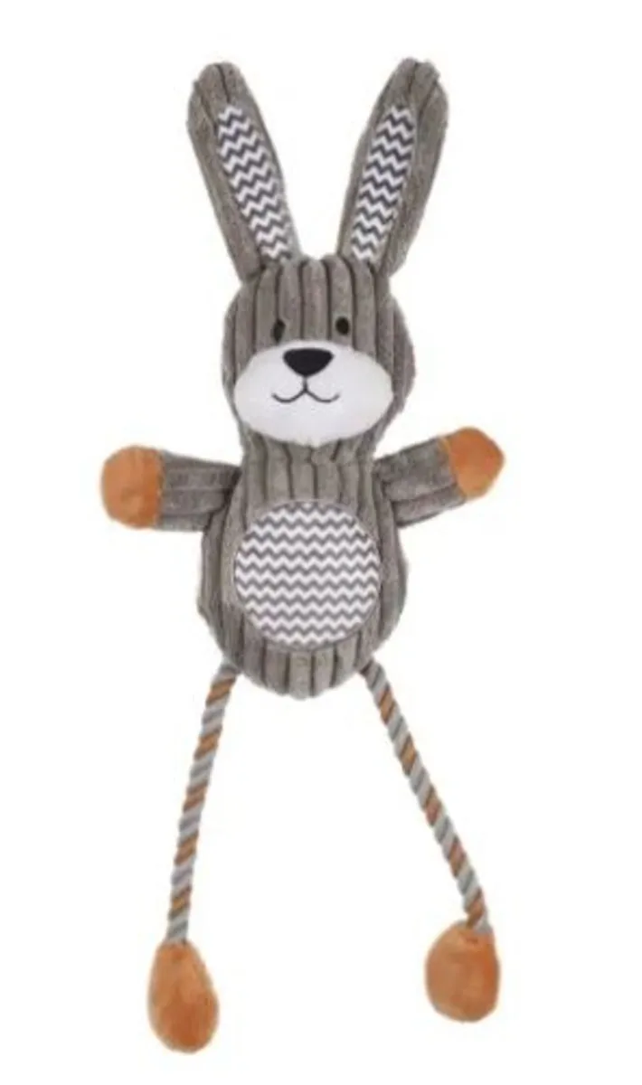 La peluche lapin est une peluche pour chien en tissu tout doux avec des jambes en cordes.