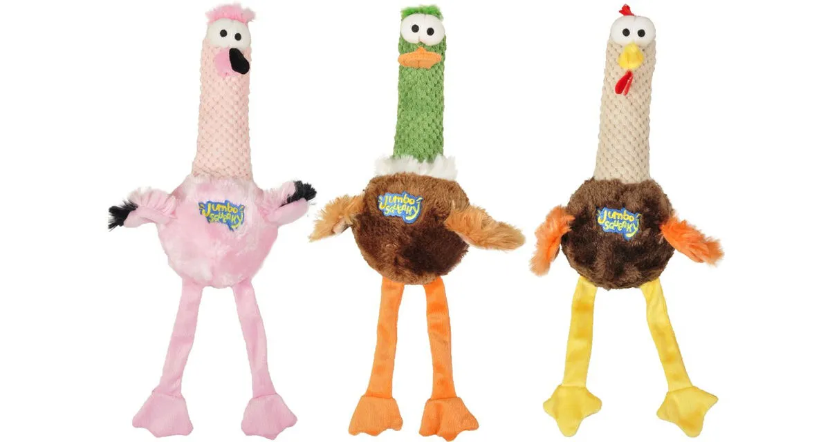 Le jouet en peluche en forme d’oiseau pour chien de Flamingo couine lorsqu’on appuie dessus, de quoi rendre votre toutou tout fou !