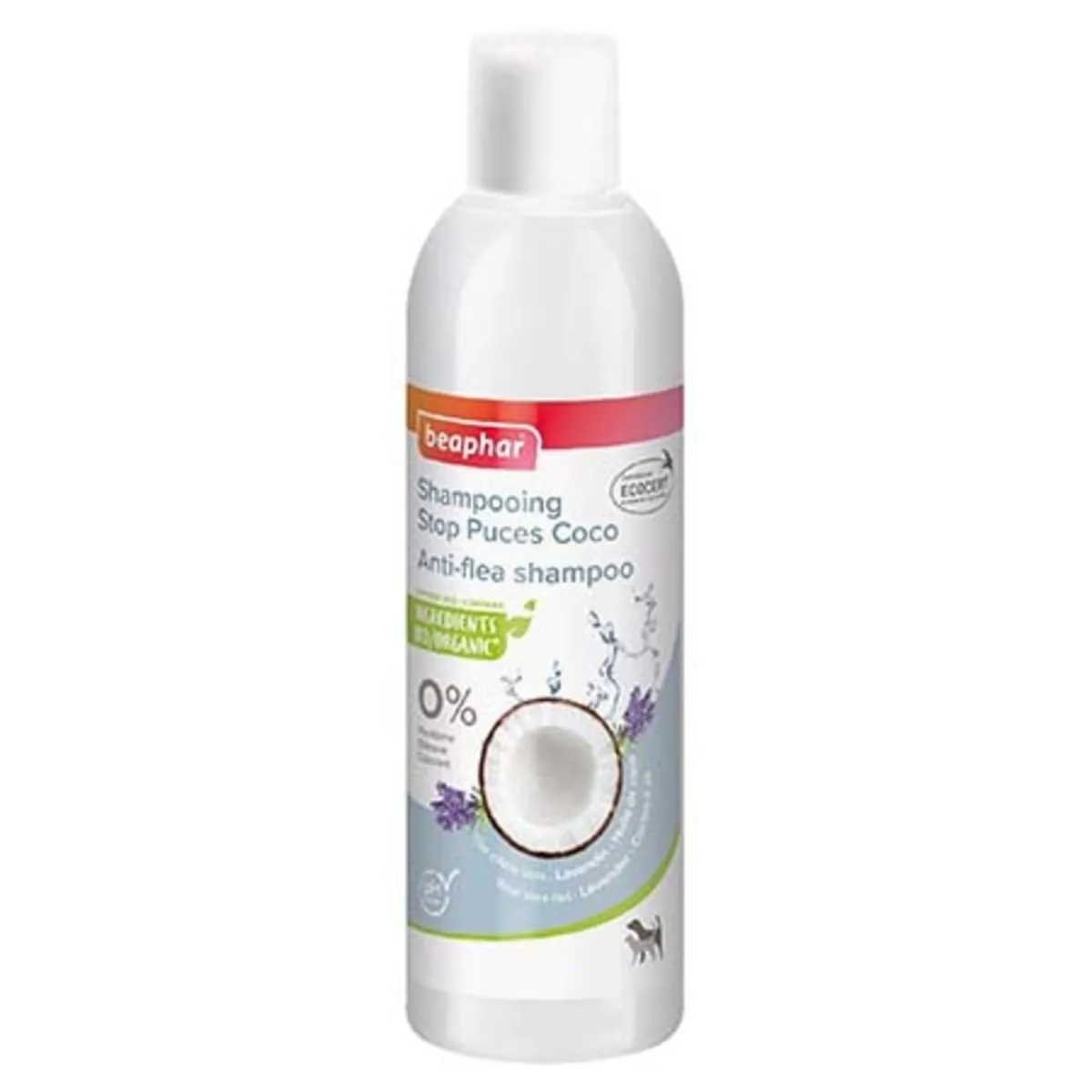 Le shampooing Stop Puces coco agit contre les puces, les tiques et les moustiques.