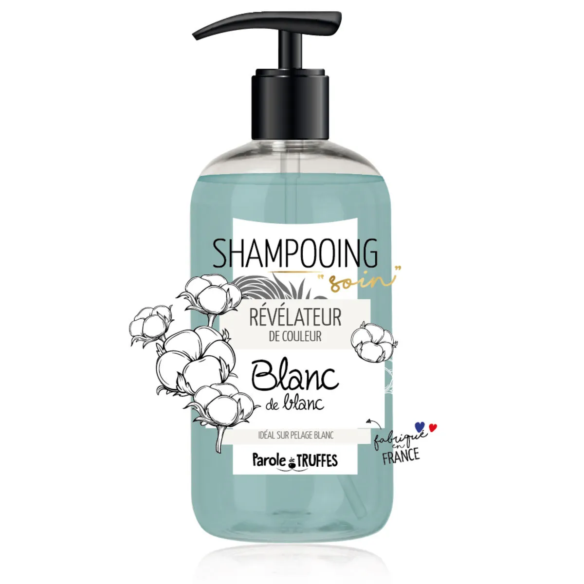 – Shampooing adapté aux chiens et aux chats à pelage blanc