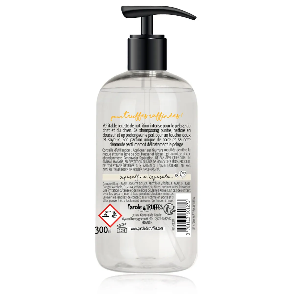 Succombez à ses senteurs fruitées de poire et ses notes d’amande, qui laisseront un parfum délicat sur le pelage de votre animal.