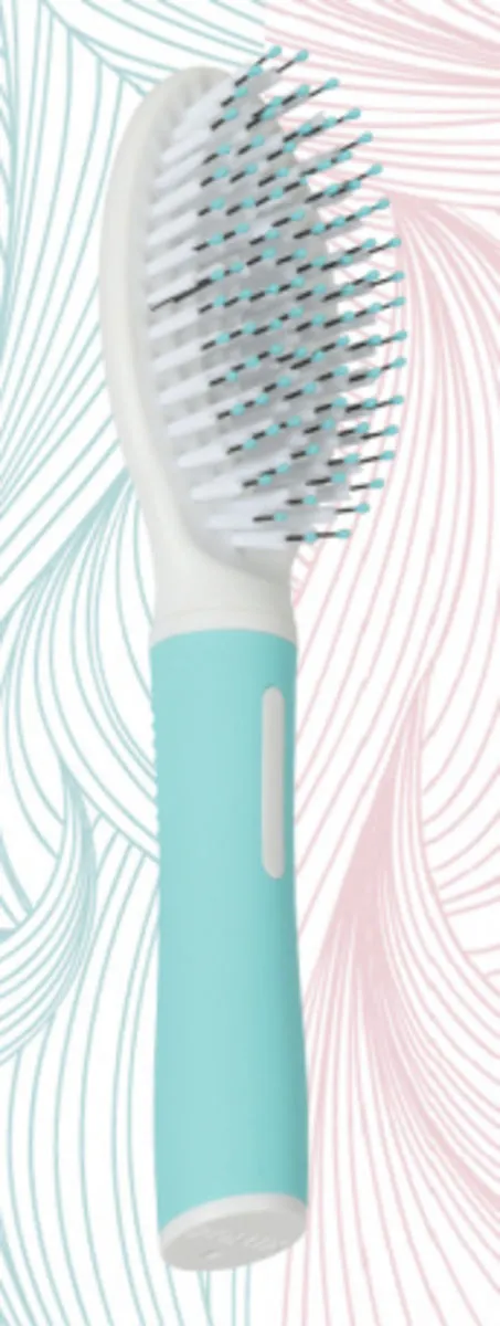 La brosse bi-matière pour chiot « Anah » permet le brossage en douceur du sous-poil du pelage grâce à ses picots souples dont les embouts en plastique offrent plus de confort à l’animal.